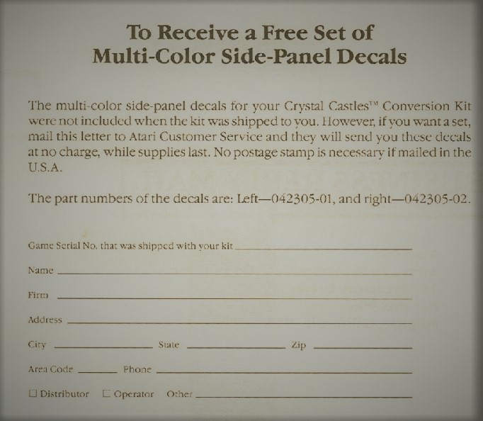 A few months later in 1984, clearly looking to squeeze every last drop out of the potential of Crystal Castles, and with some fanfare, Atari announced the kits in their Coin Connection newsletter, sent to operators and distributors across the USA: