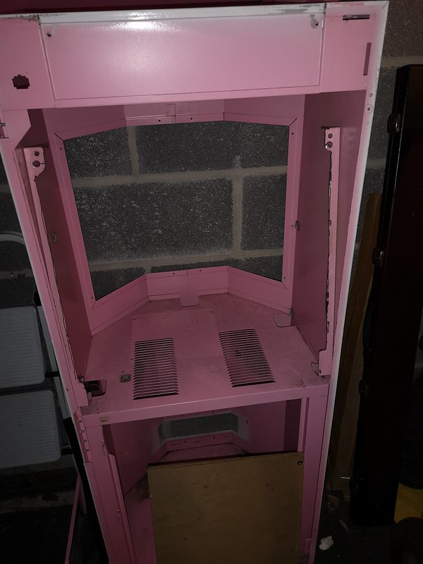 I wanted to look again at how exactly the 19″ monitor had been mounted to the cabinet. If the operator was prepared to to hack the controls and respray the whole thing, what had he done to shoehorn a bigger monitor in there, that the Cute wasn’t designed to accommodate?