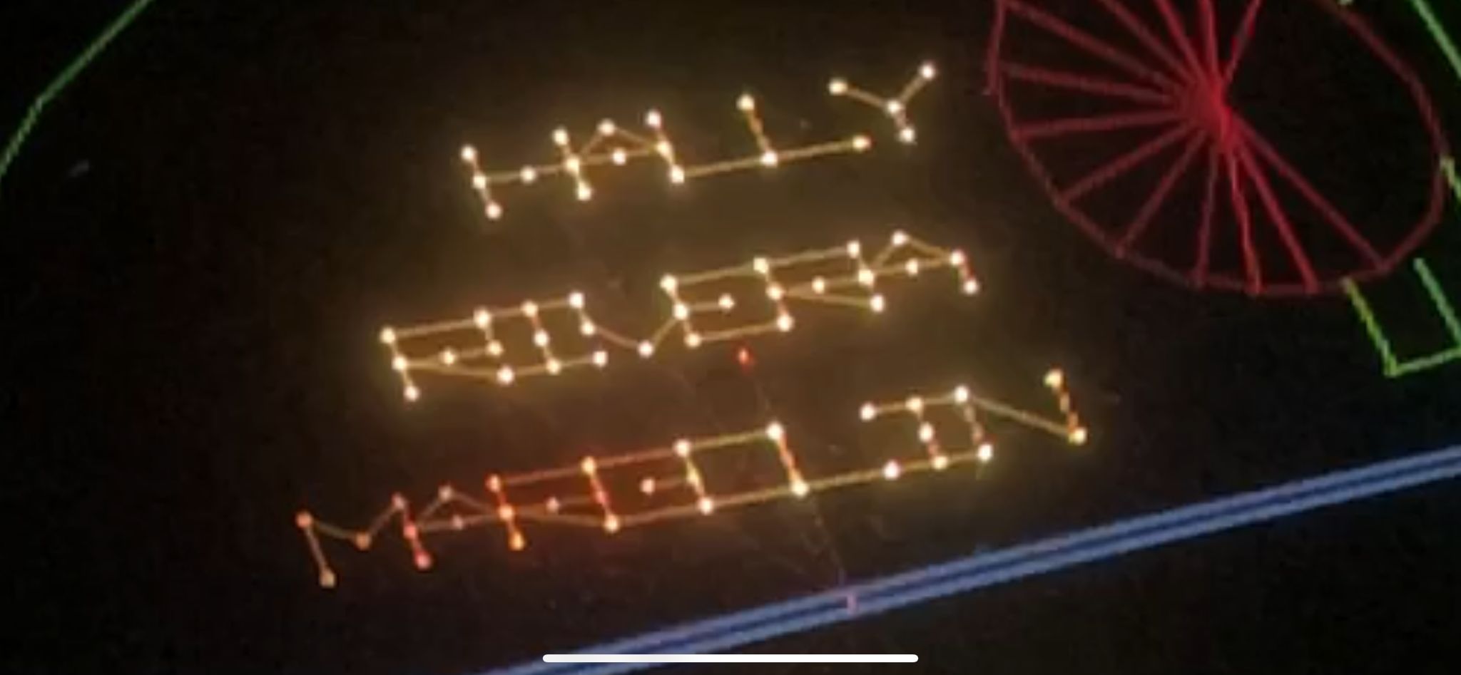 Let’s start with the all odd numbered waves. You can see that to the naked eye the series of dots are visible, but not much else is between them other than black screen. It all happens so quickly at full speed as we showed above, there’s no discernible message or words visible. But look closely…. if we slow that footage down, you can just about make out those hallowed words MAY THE FORCE BE WITH YOU: